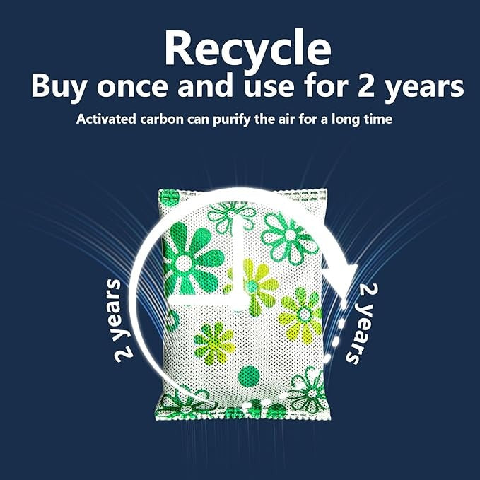 • Reusable for 2 years:These activated bamboo charcoal bags can be used for up to 2 years, simply place them in the sun for 2 hours every 2 months. This process releases all trapped moisture and odours. Once the charge is complete, you will be left with a brand new activated charcoal odour absorber bag