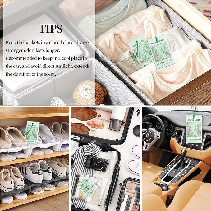 • PACKAGE INCLUDED - 14 x 0.35oz Eucalyptus sage fragrance sachets